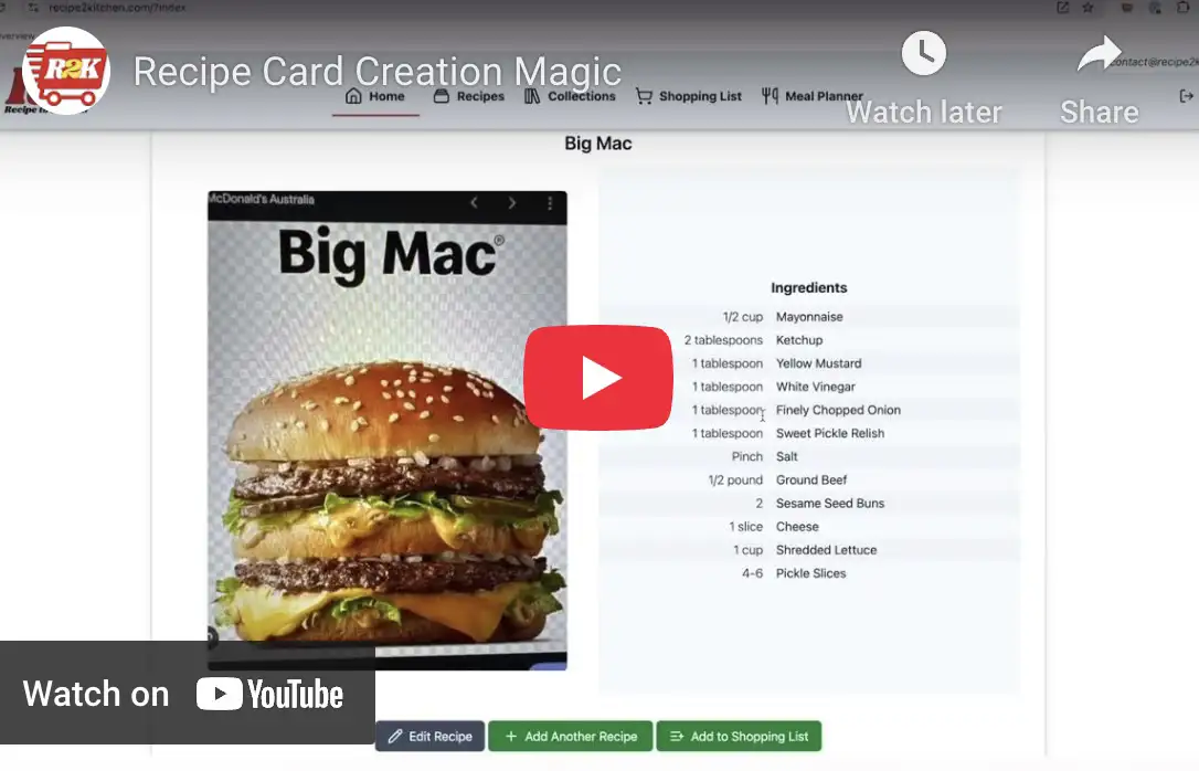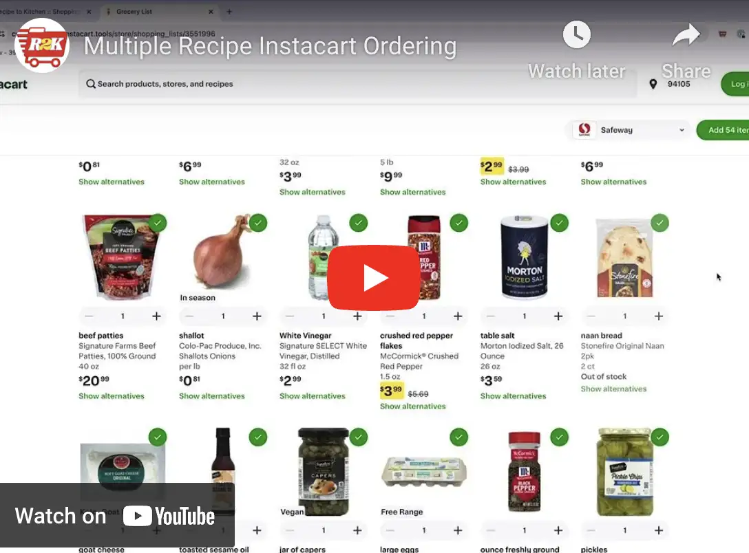 The shopping list is automatically generated based on the recipes you add. You can edit your shopping list and mark items as purchased. You can also add custom items to your shopping list using photos of lists or text.